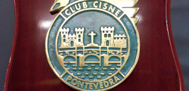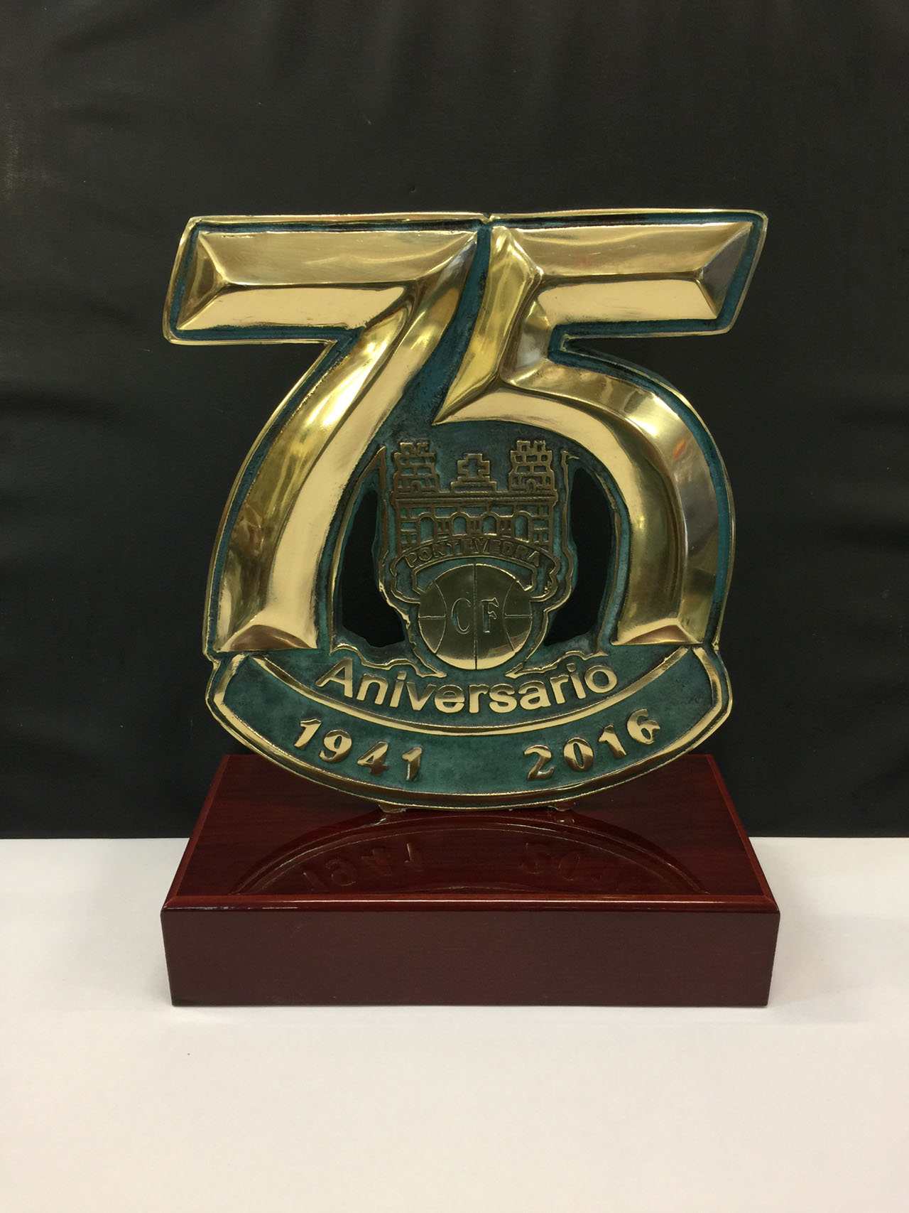Con motivo del 75 aniversario del Pontevedra C.F. trabajo conmemorativo del evento. Metopa de madera.